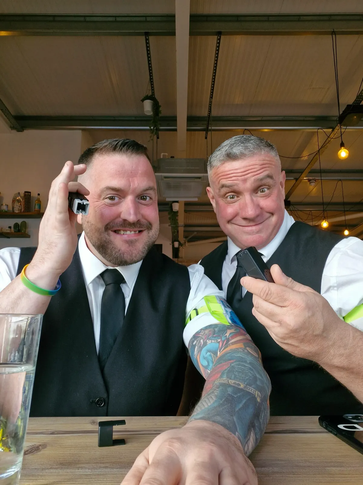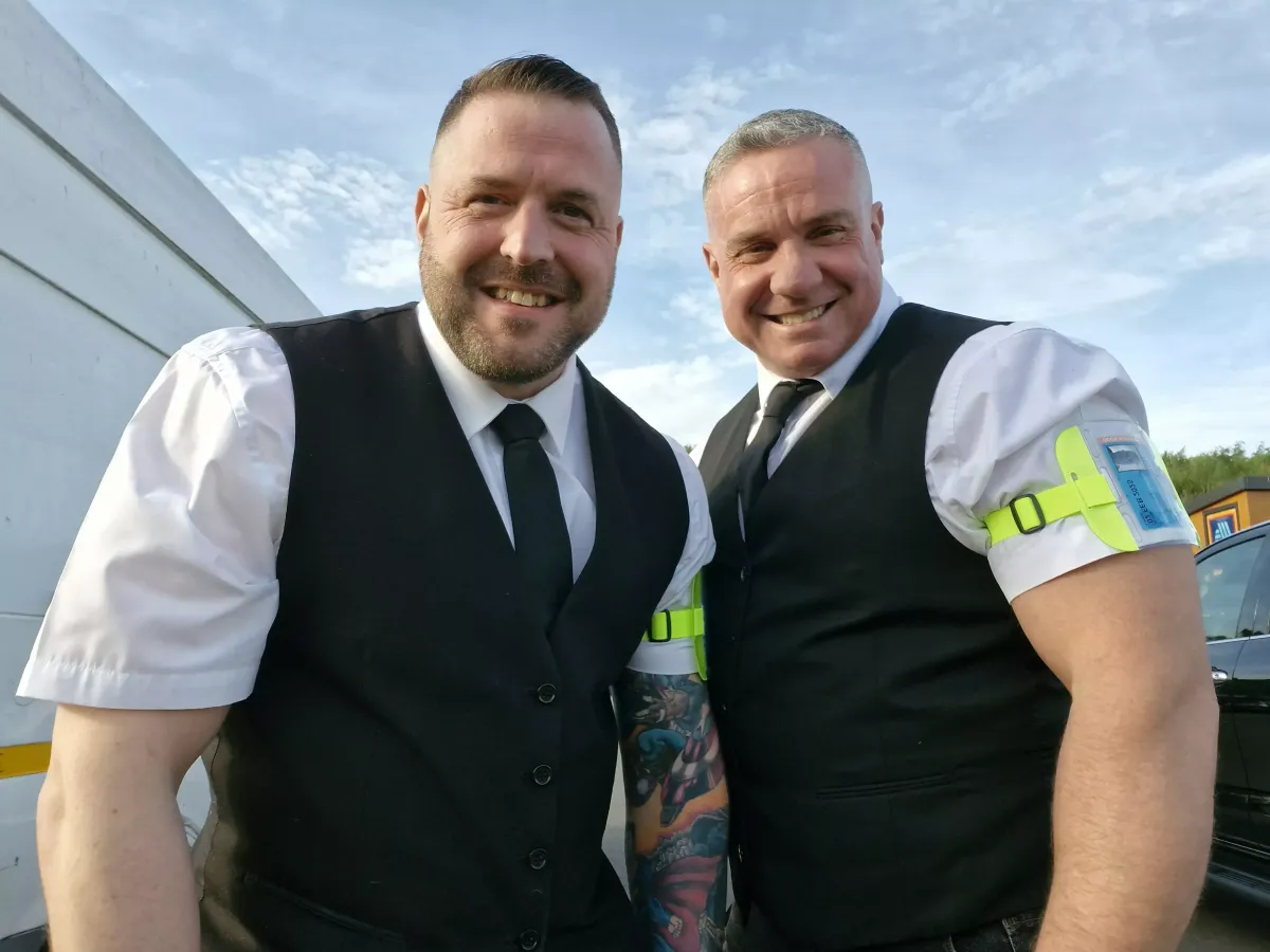 We arrange for realistic-looking doormen in full bouncer kit—earpiece, hi-vis, and clipboard—to 'arrive' and speak to a chosen guest or table. The bouncers act stern and professional, claiming there's been a complaint or issue that needs addressing. They escort the guest away for a brief moment, building tension in the room. When the audience is wondering what's going on, the bouncers return and launch into song, turning the drama into a big, funny musical moment. We time the reveal to fit your meal service and play with the crowd's curiosity. The act can be played intimidating or tongue-in-cheek depending on what you want. We also coordinate with venue staff so the moment is safe and runs smoothly.